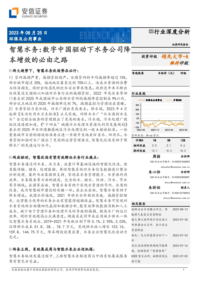 2023-08-25-安信證券--環(huán)保及公用事業(yè):智慧水務(wù):數(shù)字中國驅(qū)動(dòng)下水務(wù)公司降本增效的必由之路