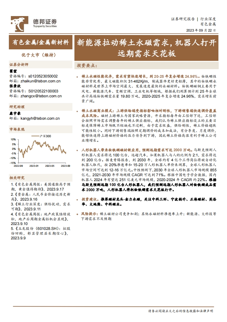 德邦證券:有色金屬金屬新材料行業(yè)深度-新能源拉動(dòng)稀土永磁需求-機(jī)器人打開(kāi)遠(yuǎn)期需求天花板