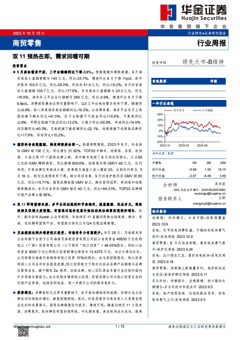 2023-10-16-華金證券--商貿(mào)零售行業(yè)周報:雙11預熱在即,需求回暖可期