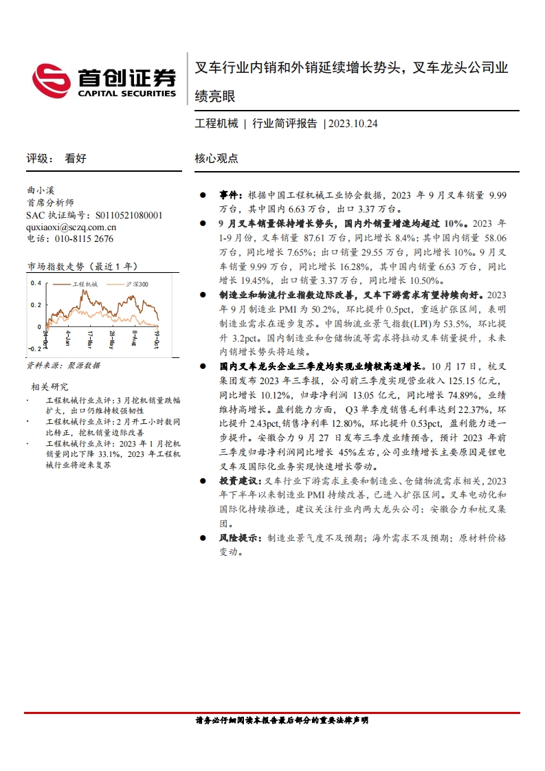 2023-10-25-首創(chuàng)證券--工程機(jī)械行業(yè)簡(jiǎn)評(píng)報(bào)告:叉車行業(yè)內(nèi)銷和外銷延續(xù)增長(zhǎng)勢(shì)頭,叉車龍頭公司業(yè)績(jī)亮眼