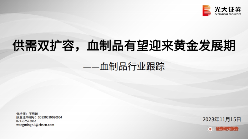 血制品行業(yè)研究報(bào)告:供需雙擴(kuò)容,血制品有望迎來黃金發(fā)展期