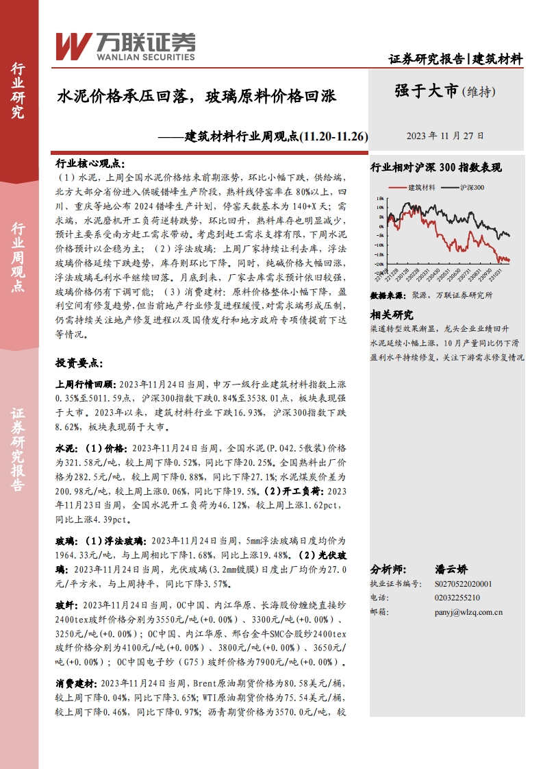 2023-11-28-萬(wàn)聯(lián)證券-建筑材料行業(yè)周觀點(diǎn):水泥價(jià)格承壓回落,玻璃原料價(jià)格回漲
