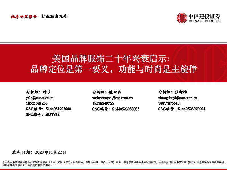 美國(guó)品牌服飾二十年興衰啟示:品牌定位是第一要義,功能與時(shí)尚是主旋律