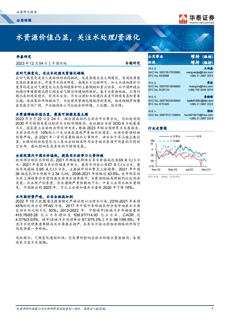 公用環(huán)保行業(yè)專題研究:水資源價值凸顯,關注水處理資源化