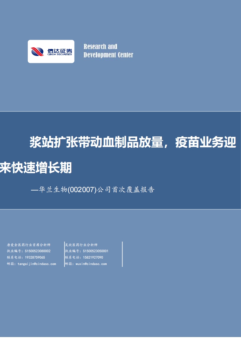 2023-12-29-信達證券-華蘭生物-公司首次覆蓋報告:漿站擴張帶動血制品放量,疫苗業(yè)務(wù)迎來快速增長期