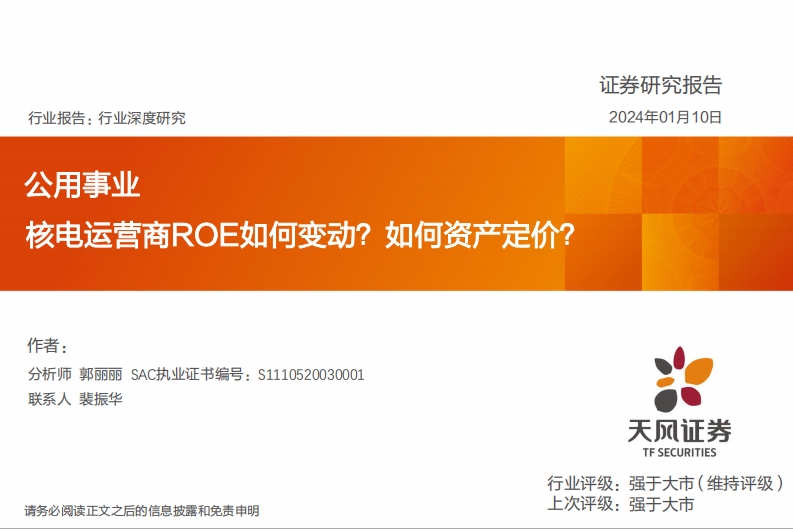 2024-01-10-天風(fēng)證券--公用事業(yè)行業(yè)深度研究:核電運(yùn)營(yíng)商ROE如何變動(dòng)?如何資產(chǎn)定價(jià)?