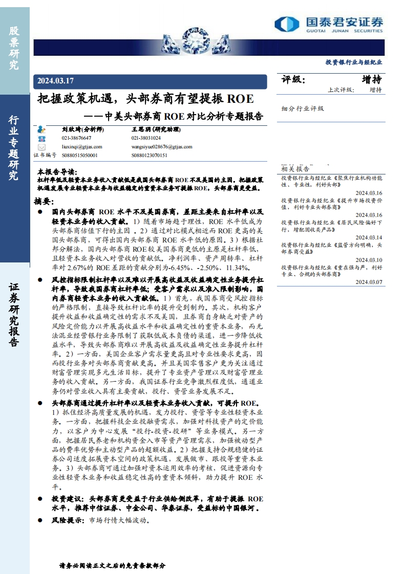 投資銀行業(yè)與經(jīng)紀(jì)業(yè)中美頭部券商ROE對(duì)比分析專題報(bào)告:把握政策機(jī)遇,頭部券商有望提振ROE