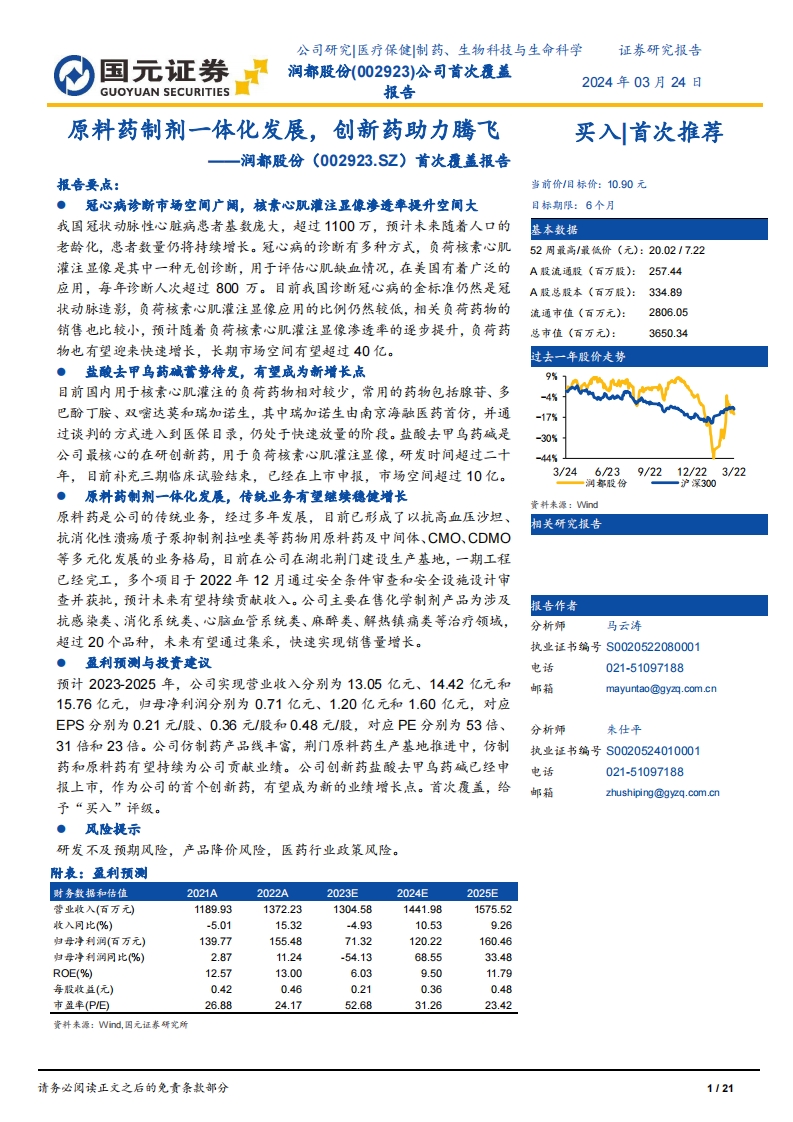 2024-03-26-國元證券-潤都股份-首次覆蓋報告:原料藥制劑一體化發(fā)展,創(chuàng)新藥助力騰飛