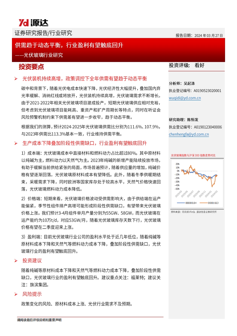 2024-03-27-源達信息--光伏玻璃行業(yè)研究:供需趨于動態(tài)平衡,行業(yè)盈利有望觸底回升
