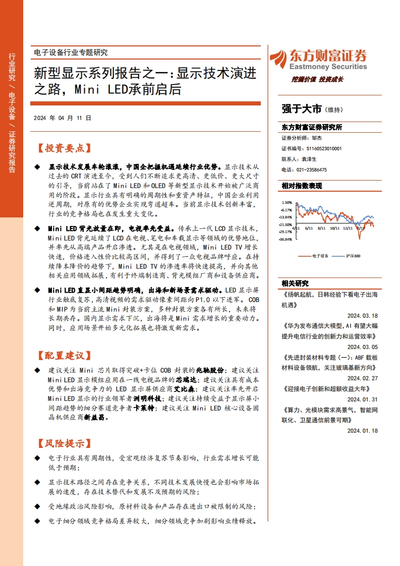 2024-04-11-東方財富證券--電子設(shè)備行業(yè)專題研究:新型顯示系列報告之一:顯示技術(shù)演進之路,Mini LED承前啟后