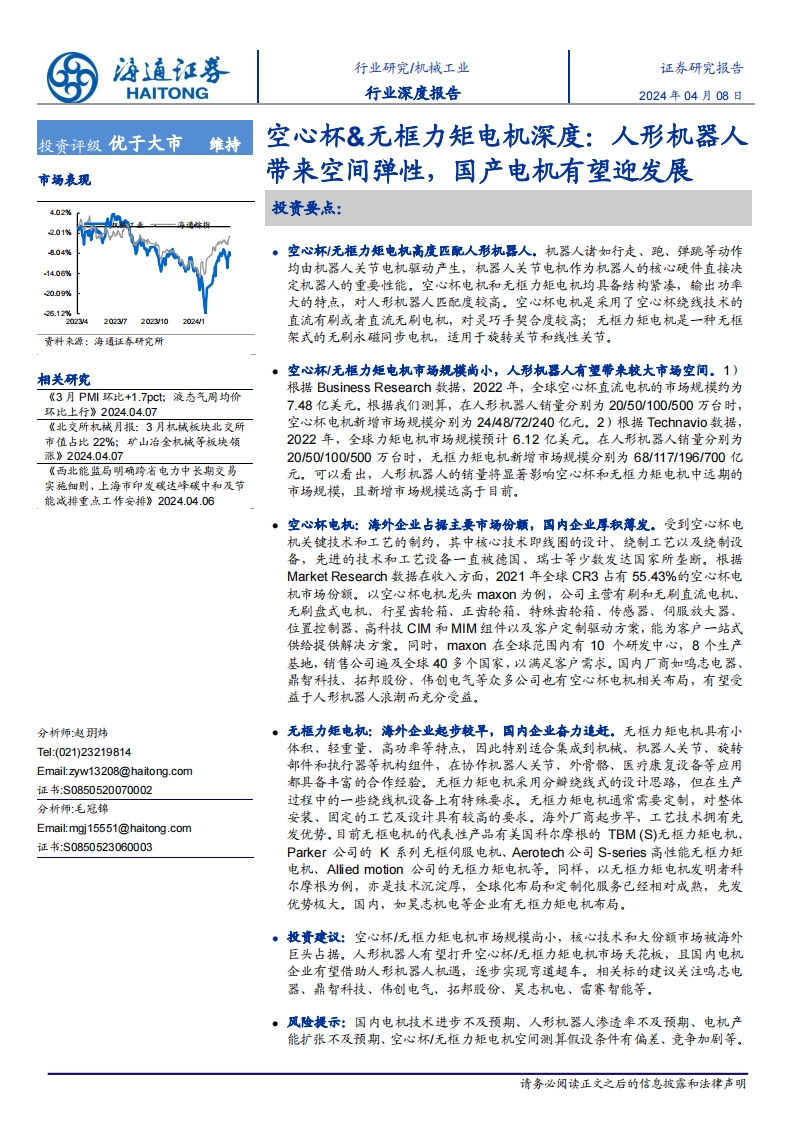 機械工業(yè)行業(yè)深度報告:空心杯&無框力矩電機深度:人形機器人帶來空間彈性,國產(chǎn)電機有望迎發(fā)展