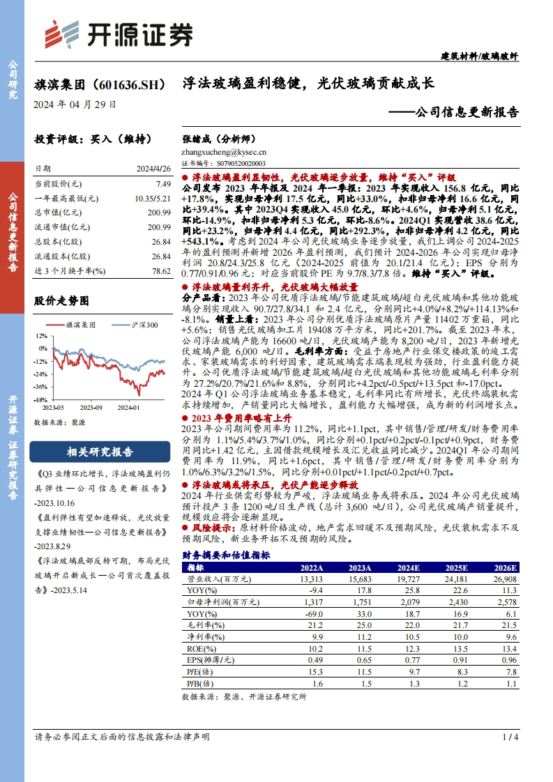 2024-04-29-開源證券-旗濱集團(tuán)-公司信息更新報(bào)告:浮法玻璃盈利穩(wěn)健,光伏玻璃貢獻(xiàn)成長(zhǎng)