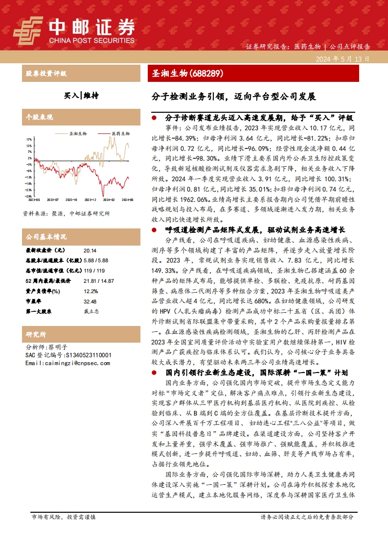 2024-05-13-中郵證券-圣湘生物-分子檢測業(yè)務引領(lǐng),邁向平臺型公司發(fā)展分子診斷賽道龍頭邁入高速發(fā)展期,給予“買入”評級
