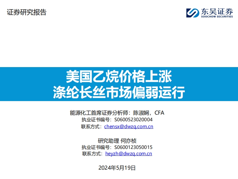 2024-05-20-東吳證券--化工行業(yè):美國乙烷價格上漲,滌綸長絲市場偏弱運行