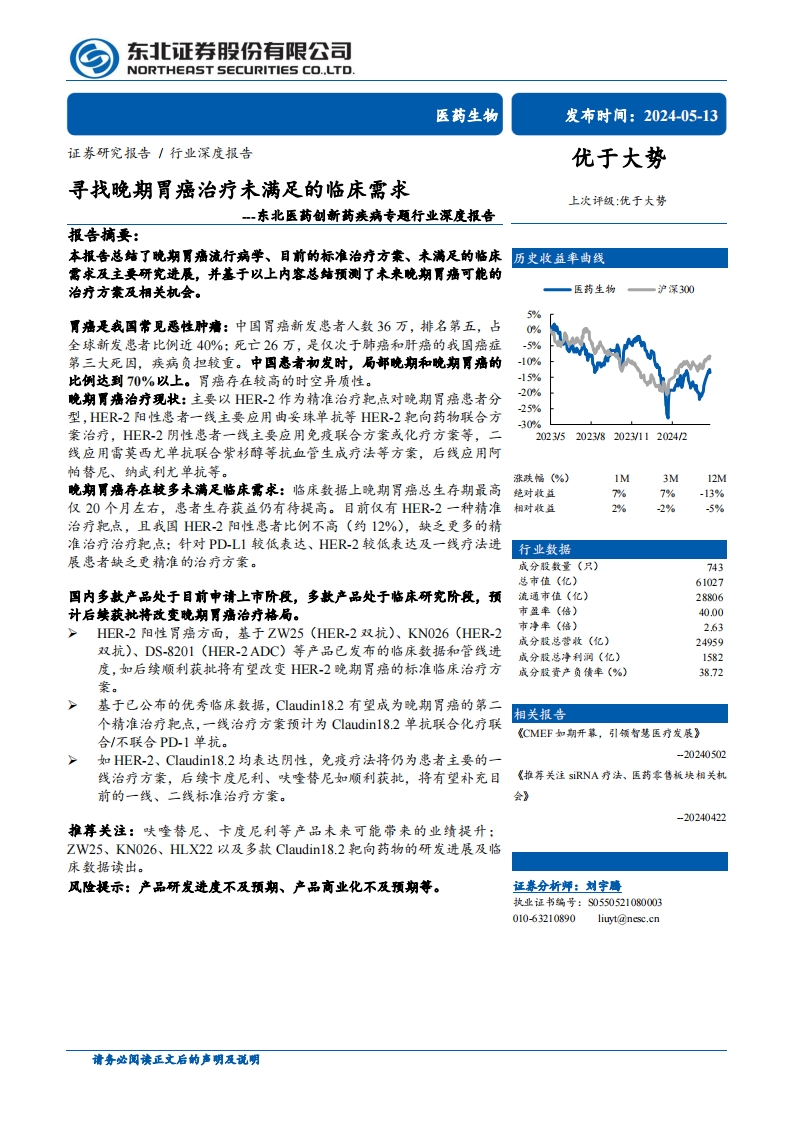東北醫(yī)藥創(chuàng)新藥疾病專題行業(yè)深度報告:尋找晚期胃癌治療未滿足的臨床需求