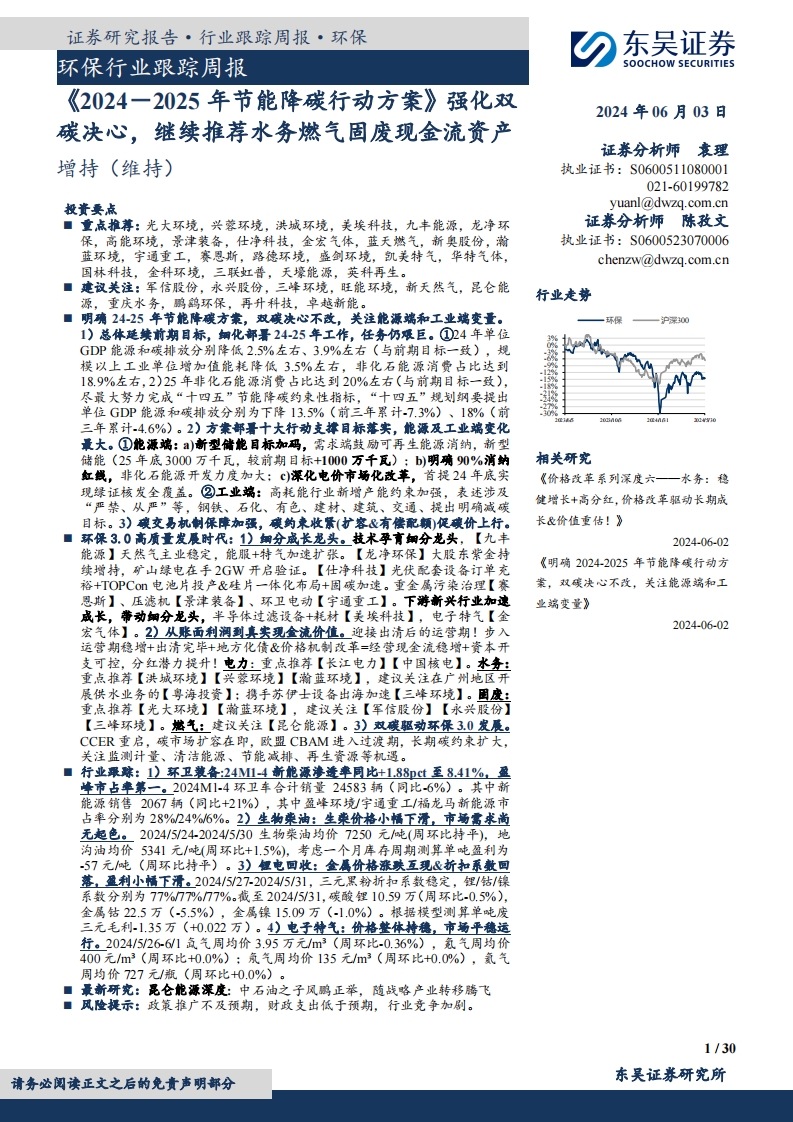 2024-06-03-東吳證券--環(huán)保行業(yè)跟蹤周報(bào):《2024-2025年節(jié)能降碳行動(dòng)方案》強(qiáng)化雙碳決心,繼續(xù)推薦水務(wù)燃?xì)夤虖U現(xiàn)金流資產(chǎn)