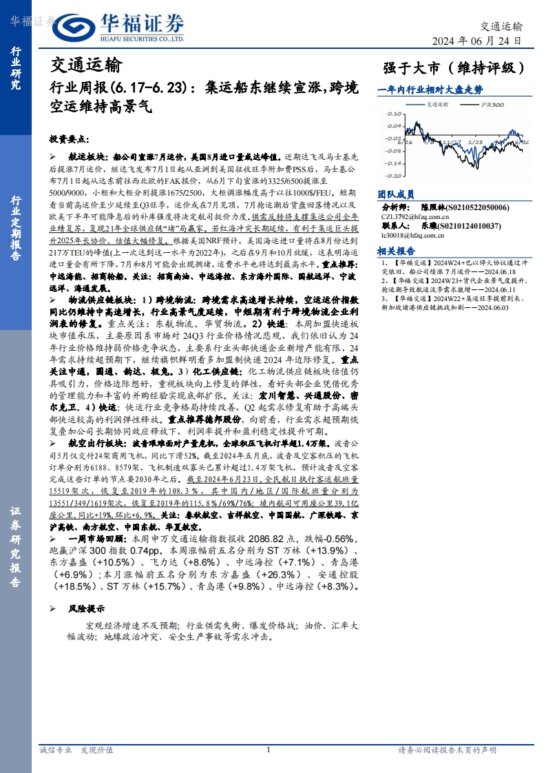 2024-06-25-華福證券-交通運(yùn)輸行業(yè)周報(bào):集運(yùn)船東繼續(xù)宣漲,跨境空運(yùn)維持高景氣