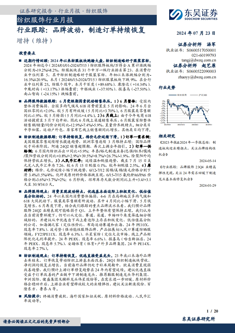 2024-07-23-東吳證券--紡織服飾行業(yè)月報:行業(yè)跟蹤:品牌波動,制造訂單持續(xù)恢復(fù)
