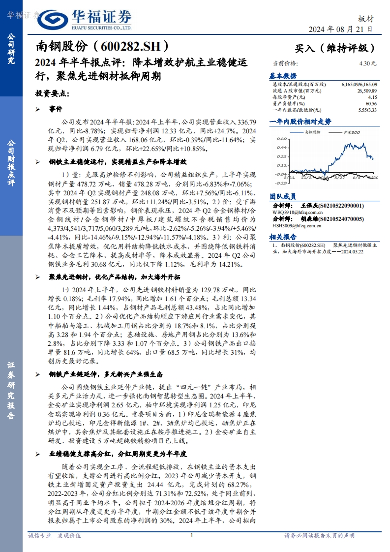 2024-08-21-華福證券-南鋼股份-2024年半年報(bào)點(diǎn)評(píng):降本增效護(hù)航主業(yè)穩(wěn)健運(yùn)行,聚焦先進(jìn)鋼材抵御周期