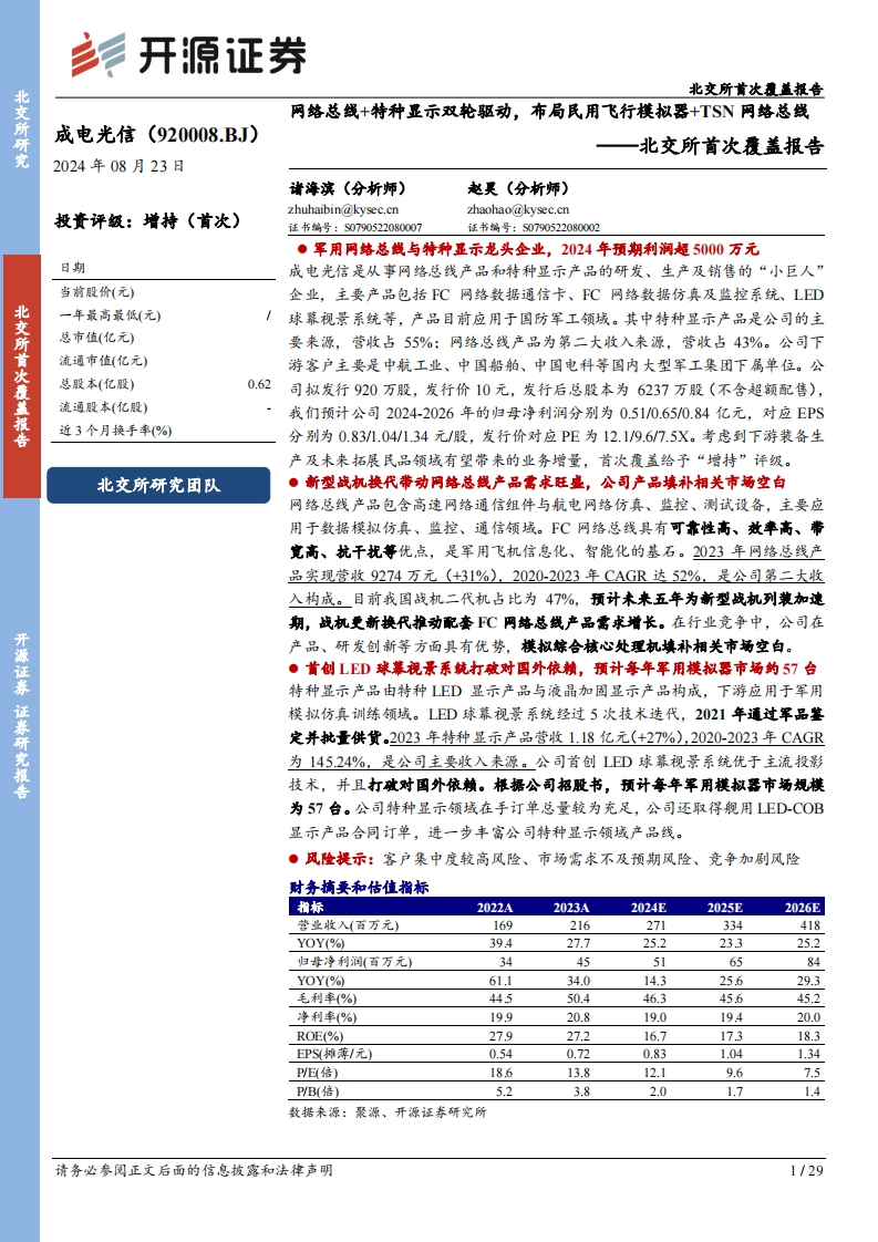 2024-08-23-開源證券-成電光信-北交所首次覆蓋報(bào)告:網(wǎng)絡(luò)總線+特種顯示雙輪驅(qū)動(dòng),布局民用飛行模擬器+TSN網(wǎng)絡(luò)總線