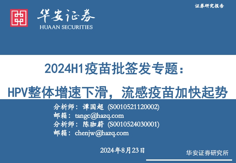 2024-08-25-華安證券--2024H1疫苗批簽發(fā)專題:HPV整體增速下滑,流感疫苗加快起勢