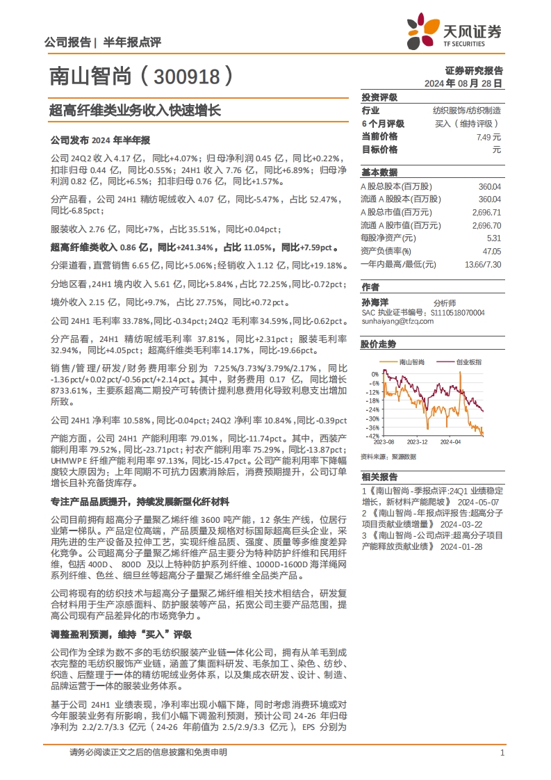 2024-08-28-天風證券-南山智尚-超高纖維類業(yè)務(wù)收入快速增長
