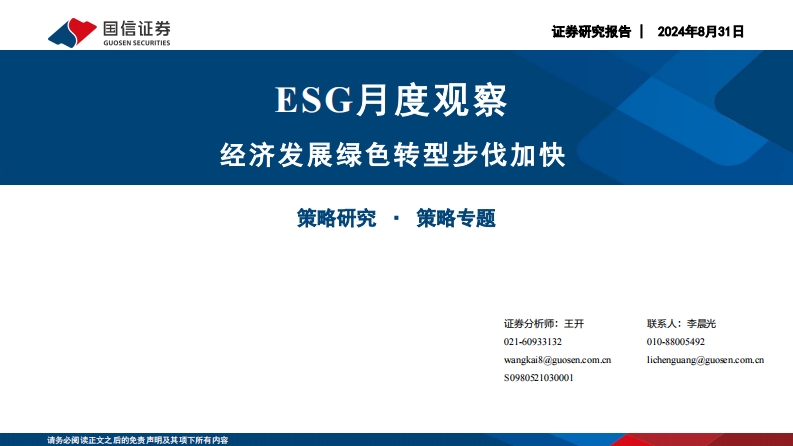 2024-08-31-國信證券-ESG月度觀察:經濟發(fā)展綠色轉型步伐