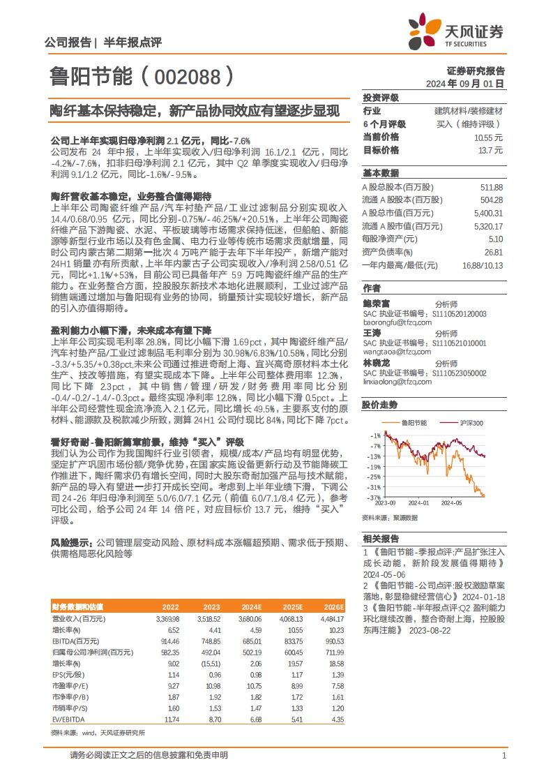 2024-09-01-天風(fēng)證券-魯陽節(jié)能-陶纖基本保持穩(wěn)定,新產(chǎn)品協(xié)同效應(yīng)有望逐步顯現(xiàn)