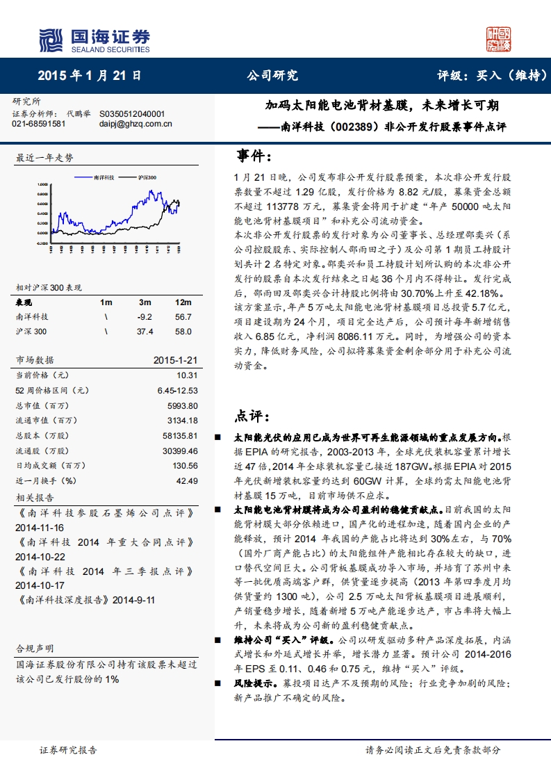 20150121-國海證券:南洋科技-加碼太陽能電池背材基膜,未來增長可期-3頁