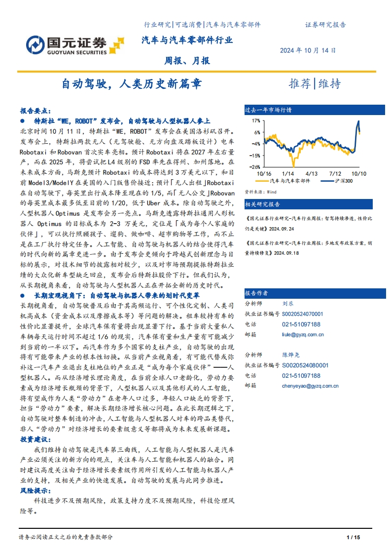 2024-10-14-國(guó)元證券-汽車與汽車零部件行業(yè)周報(bào)、月報(bào):自動(dòng)駕駛,人類歷史新篇章