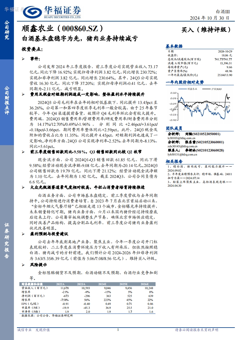 2024-10-31-華福證券-順鑫農(nóng)業(yè)-白酒基本盤穩(wěn)字為先,豬肉業(yè)務(wù)持續(xù)減虧
