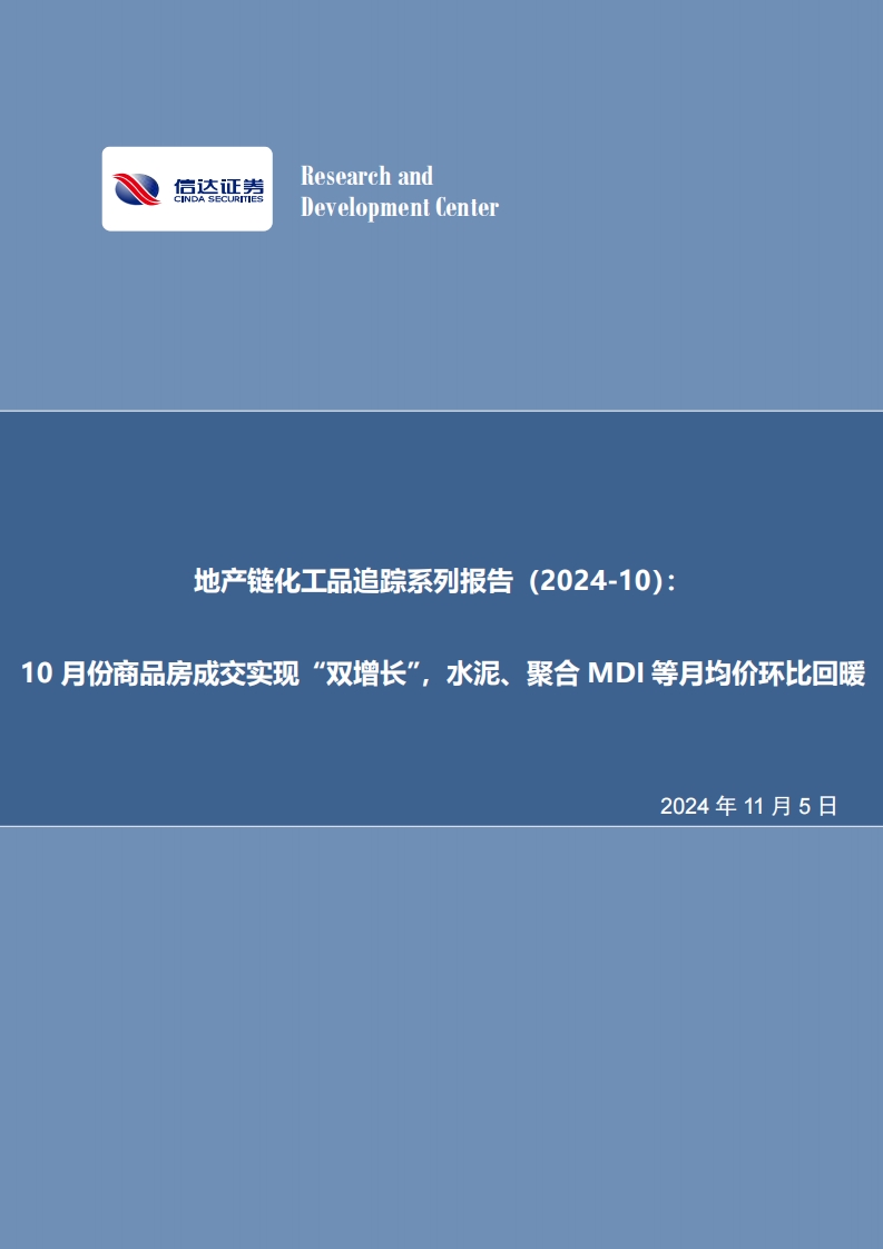 2024-11-05-信達證券-地產鏈化工品追蹤系列報告(2024-10):10月份商品房成交實現(xiàn)“雙增長”,水泥、聚合MDI等月均價環(huán)比回暖