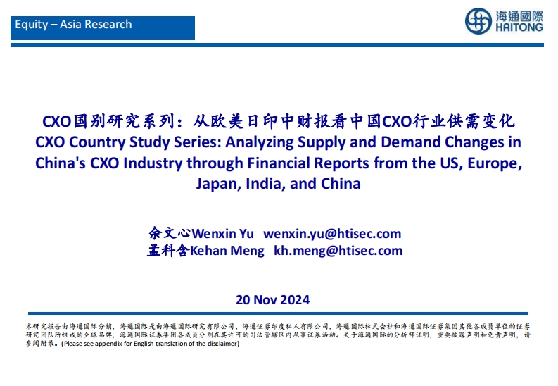 2024-11-21-海通國際--CXO國別研究系列:從歐美日印中財(cái)報(bào)看中國CXO行業(yè)供需變化