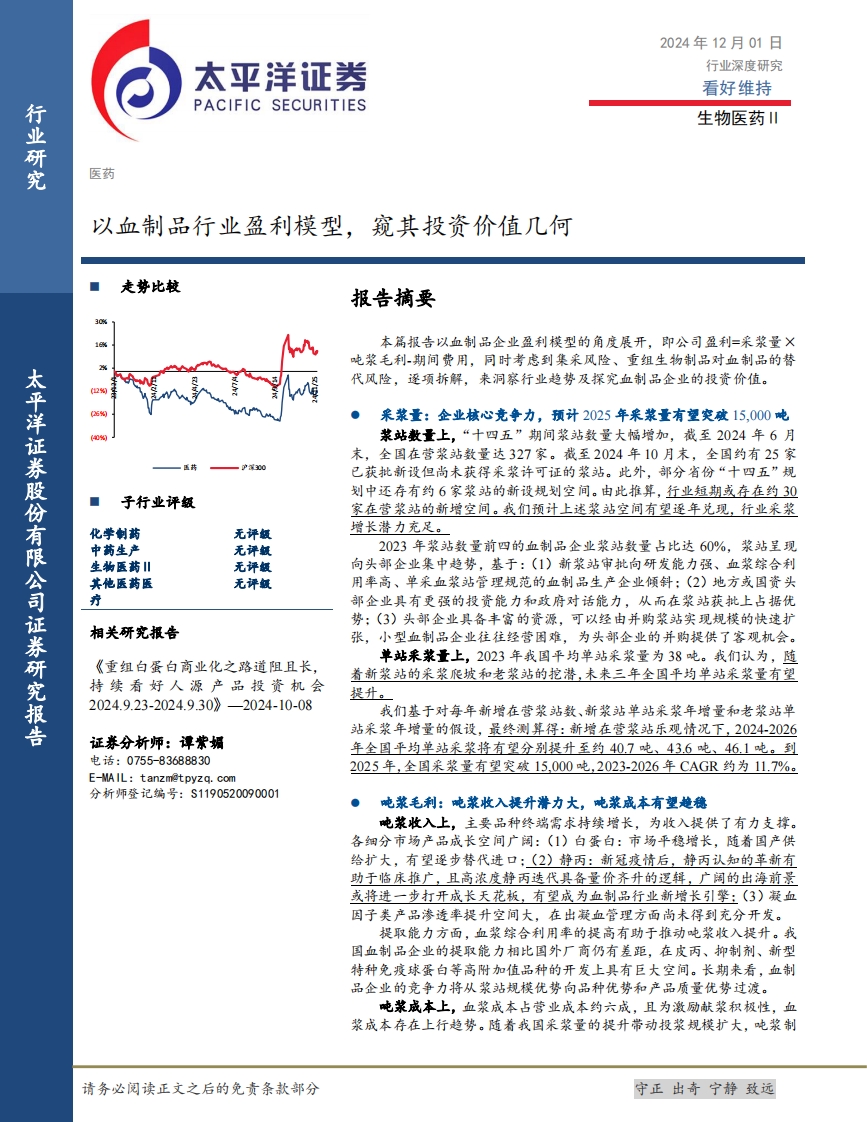 2024-12-02-太平洋--生物醫(yī)藥Ⅱ行業(yè)深度研究:以血制品行業(yè)盈利模型,窺其投資價值幾何