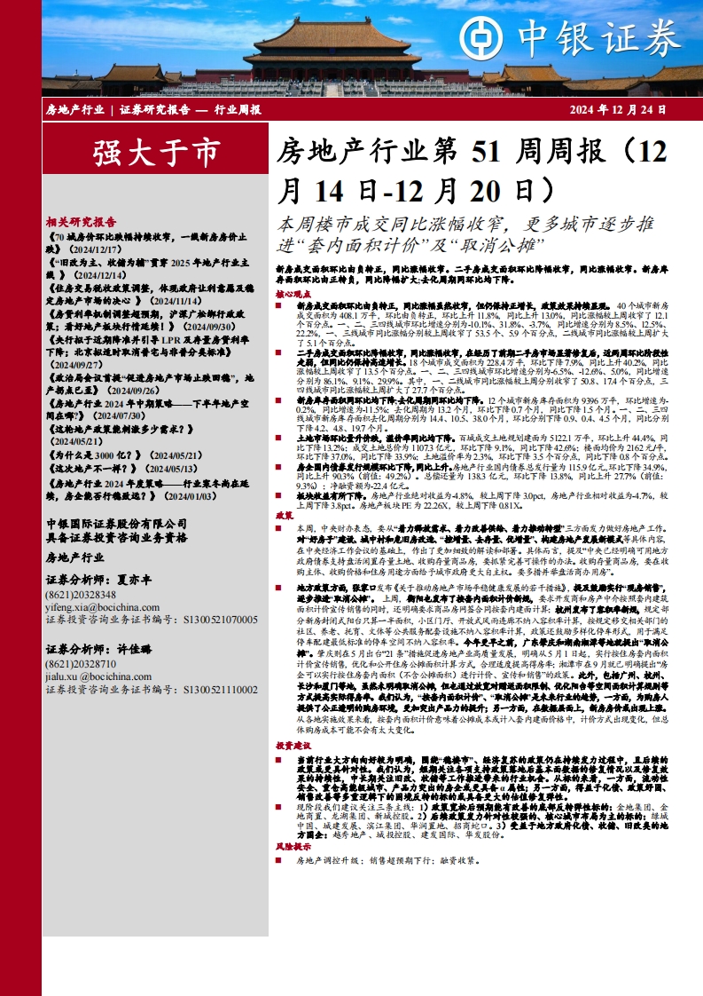 2024-12-24-中銀證券--房地產(chǎn)行業(yè)第51周周報(bào):本周樓市成交同比漲幅收窄,更多城市逐步推進(jìn)“套內(nèi)面積計(jì)價(jià)”及“取消公攤”