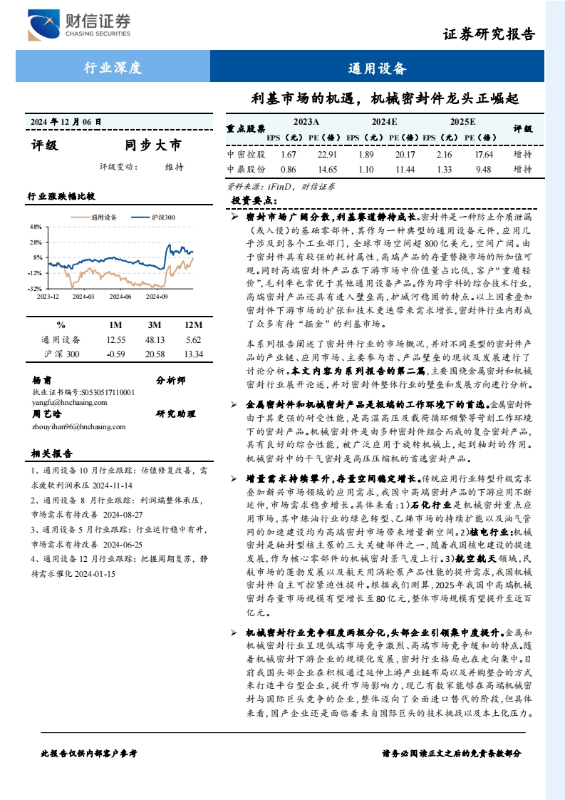 2024-12-26-財(cái)信證券--通用設(shè)備行業(yè)深度:利基市場的機(jī)遇,機(jī)械密封件龍頭正崛起