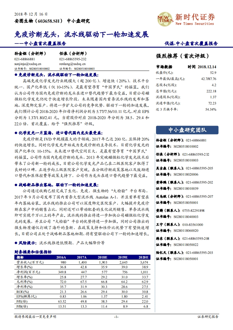 20181216-新時(shí)代證券:安圖生物中小盤(pán)首次覆蓋報(bào)告-免疫診斷龍頭,流水線驅(qū)動(dòng)下一輪加速發(fā)展-17頁(yè)