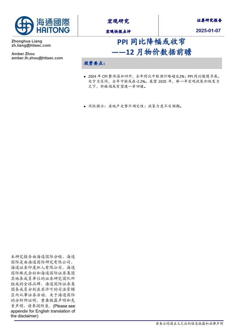 2025-01-07-海通國(guó)際-12月物價(jià)數(shù)據(jù)前瞻:PPI同比降幅或收窄