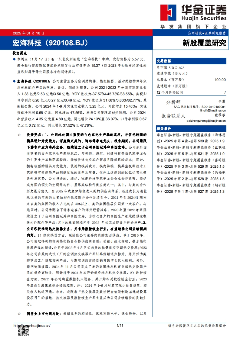 2025-01-17-華金證券-宏??萍?新股覆蓋研究:宏海科技