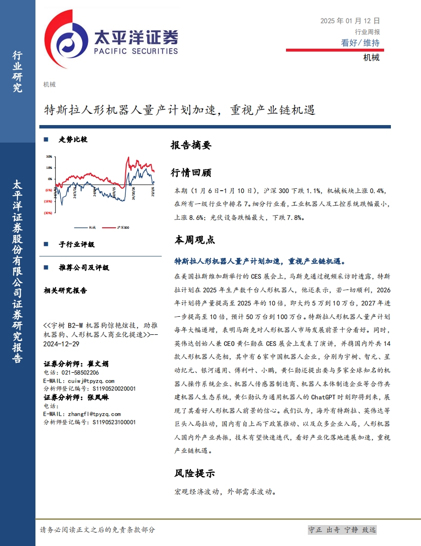2025-01-13-太平洋--機械行業(yè)周報:特斯拉人形機器人量產(chǎn)計劃加速,重視產(chǎn)業(yè)鏈機遇