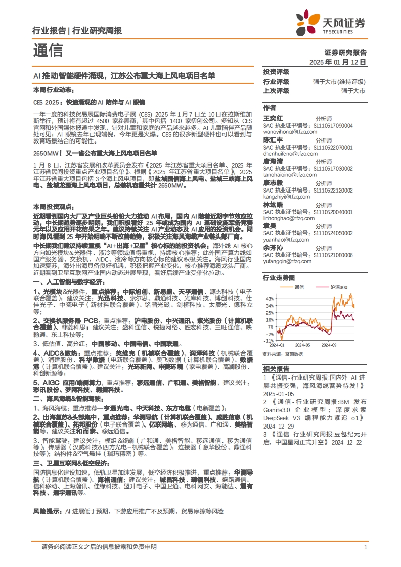 2025-01-12-天風(fēng)證券--通信行業(yè)研究周報:AI推動智能硬件涌現(xiàn),江蘇公布重大海上風(fēng)電項目名單