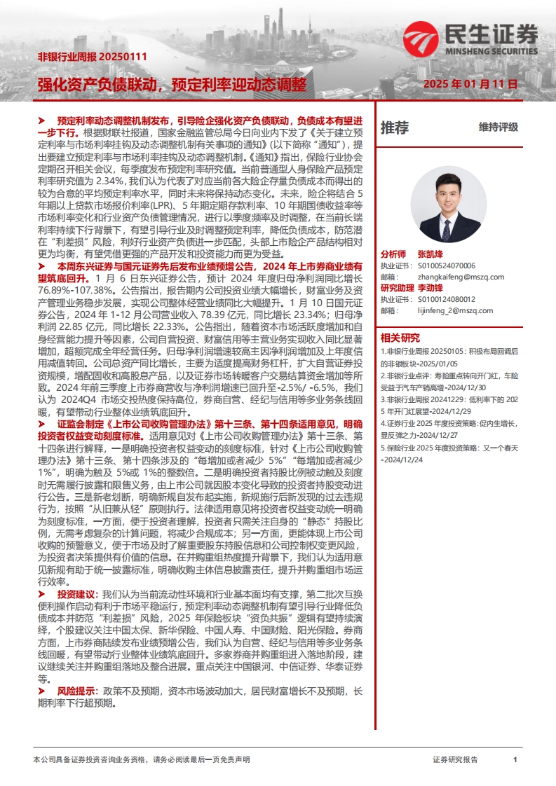 2025-01-12-民生證券--非銀行業(yè)周報(bào):強(qiáng)化資產(chǎn)負(fù)債聯(lián)動(dòng),預(yù)定利率迎動(dòng)態(tài)調(diào)整