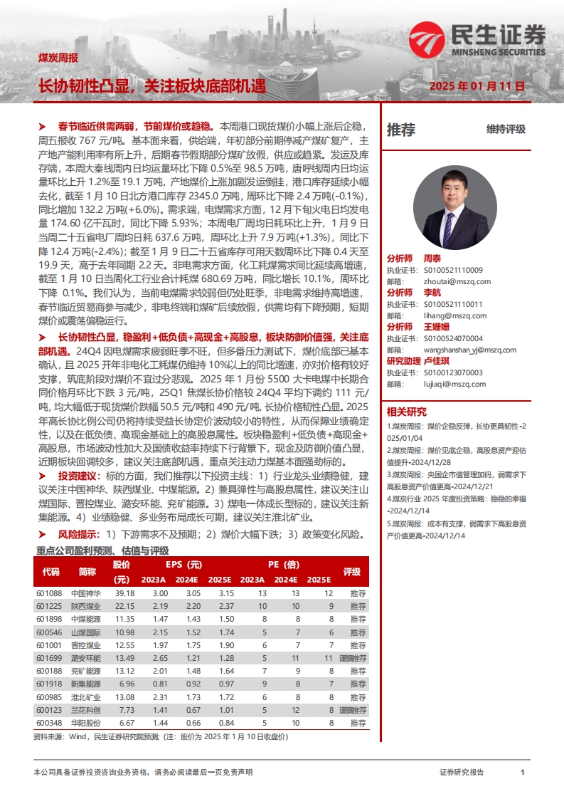 2025-01-11-民生證券--煤炭周報:長協(xié)韌性凸顯,關(guān)注板塊底部機(jī)遇