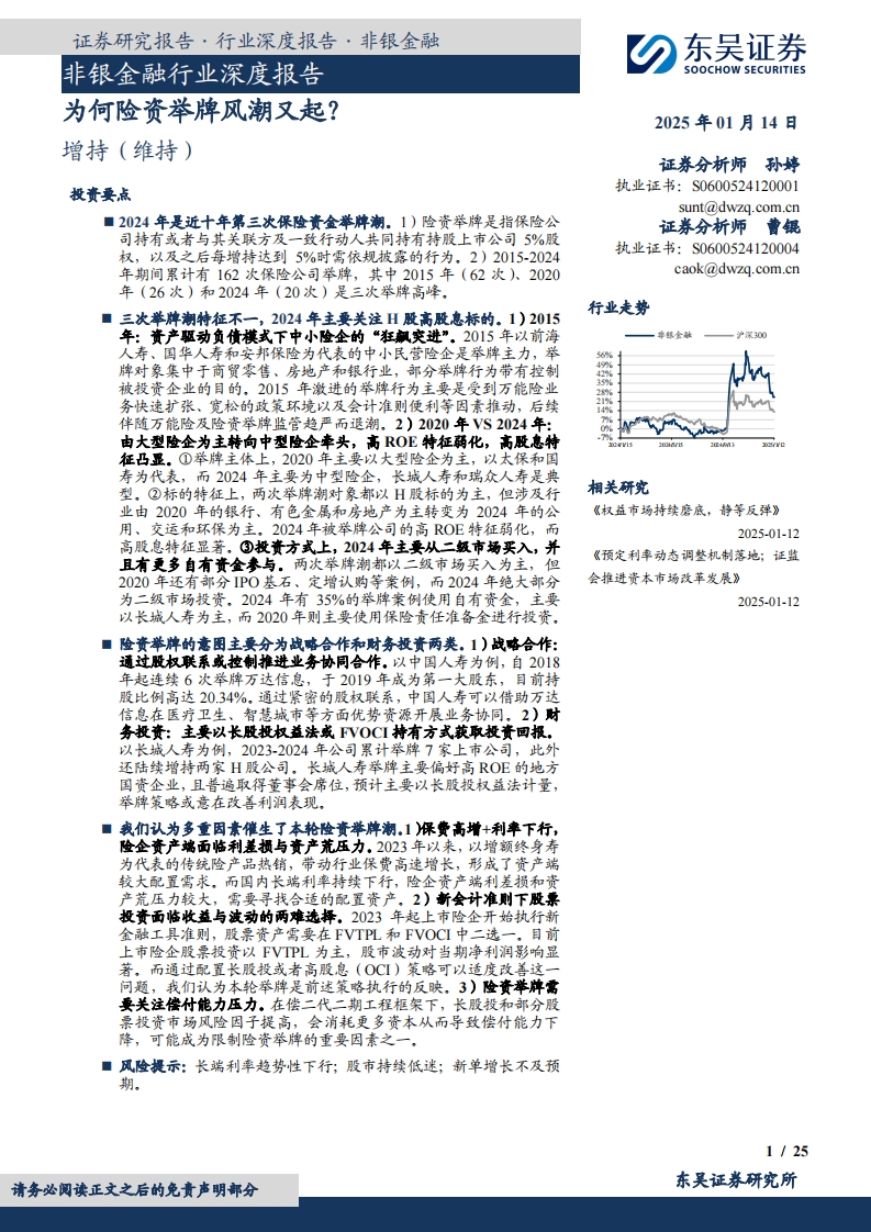 非銀金融行業(yè)深度報(bào)告-為何險(xiǎn)資舉牌風(fēng)潮又起?