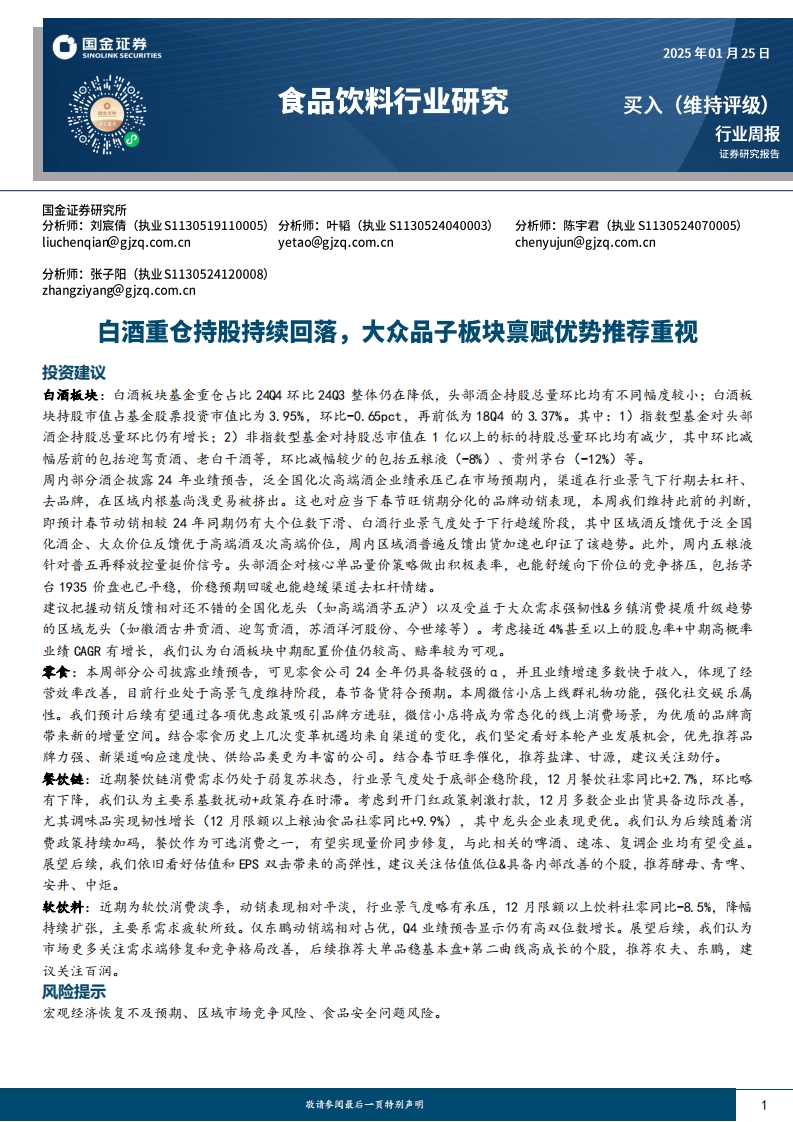 2025-01-26-國金證券--食品飲料行業(yè)研究:白酒重倉持股持續(xù)回落,大眾品子板塊稟賦優(yōu)勢推薦重視
