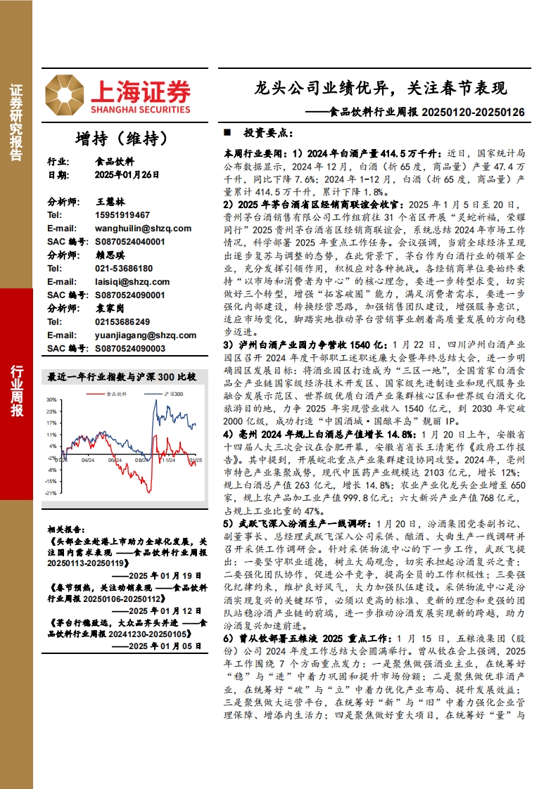 2025-01-27-上海證券--食品飲料行業(yè)周報(bào):龍頭公司業(yè)績優(yōu)異,關(guān)注春節(jié)表現(xiàn)