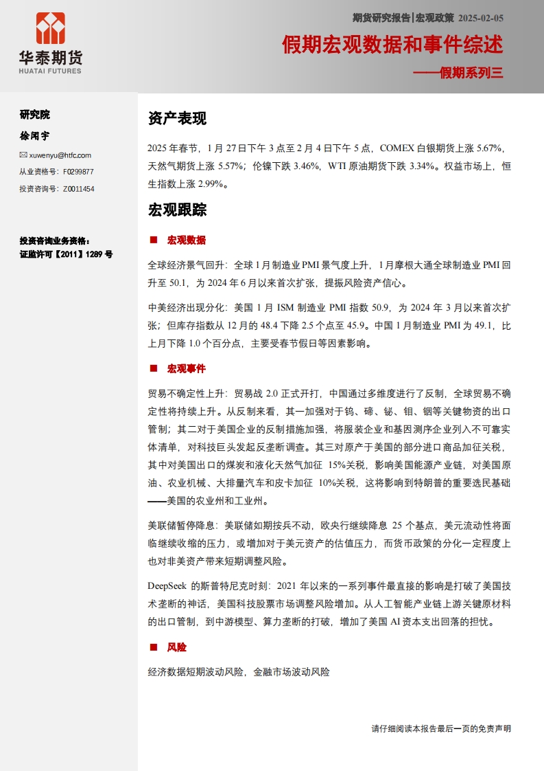 2025-02-05-華泰期貨-假期系列三:假期宏觀數(shù)據(jù)和事件綜述