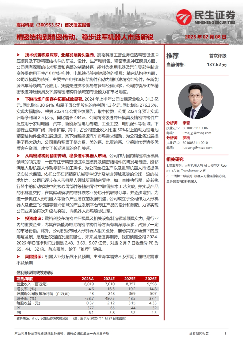 2025-02-08-民生證券-震??萍?首次覆蓋報告:精密結(jié)構(gòu)到精密傳動,穩(wěn)步進軍機器人市場新銳
