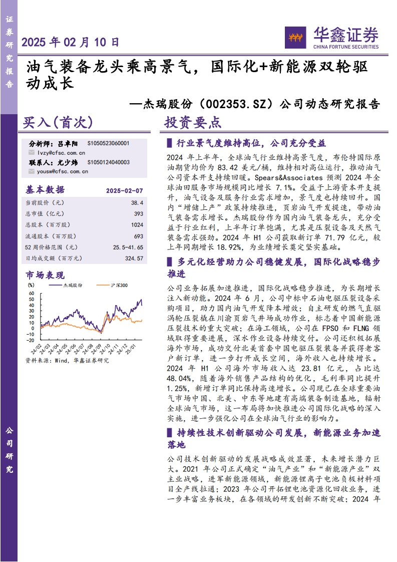 2025-02-10-華鑫證券-杰瑞股份-公司動(dòng)態(tài)研究報(bào)告:油氣裝備龍頭乘高景氣,國際化+新能源雙輪驅(qū)動(dòng)成長
