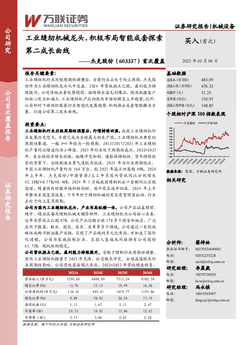 2025-03-06-萬聯(lián)證券-杰克股份-首次覆蓋:工業(yè)縫紉機械龍頭,積極布局智能成套探索第二成長曲線